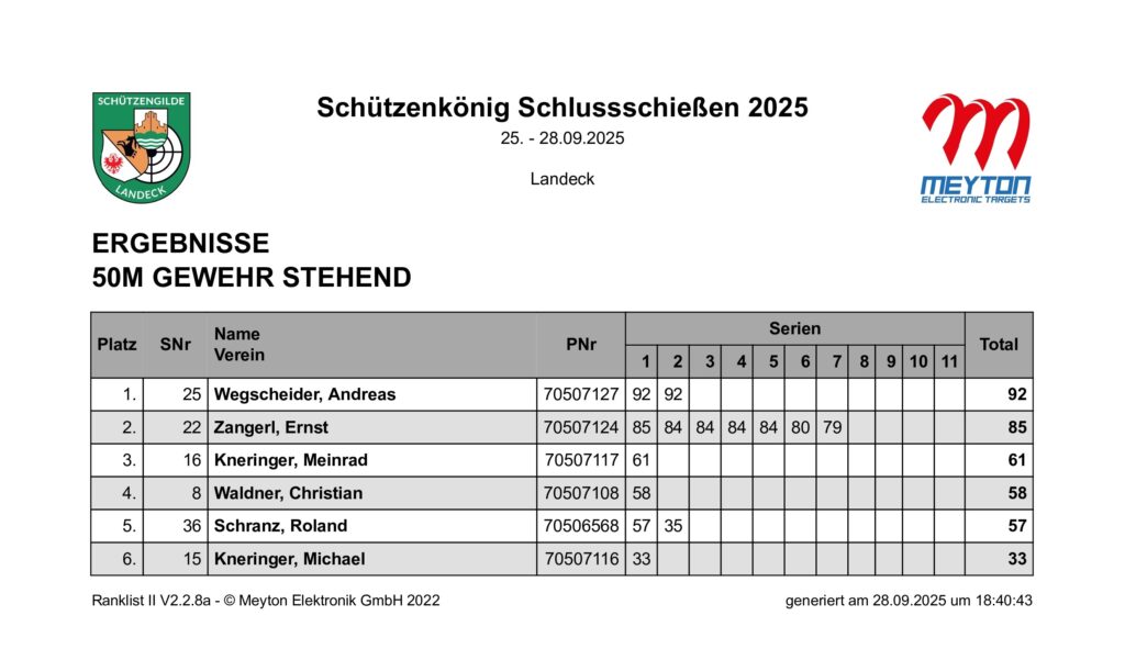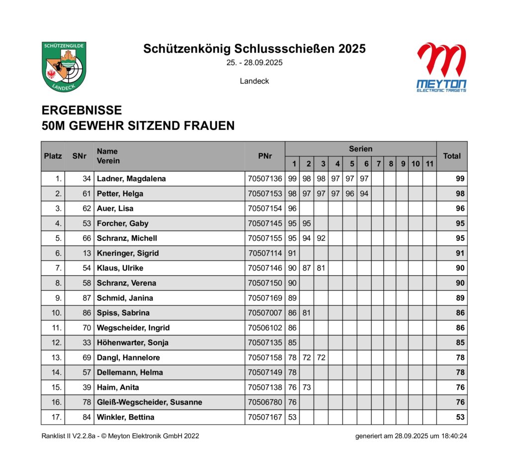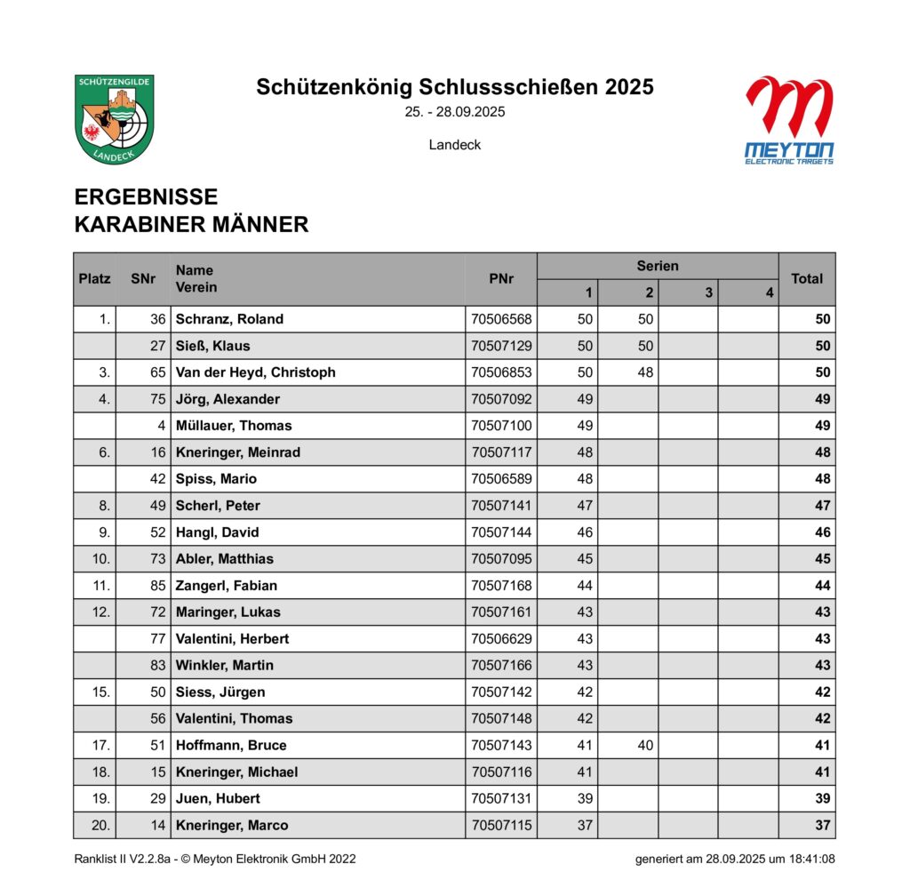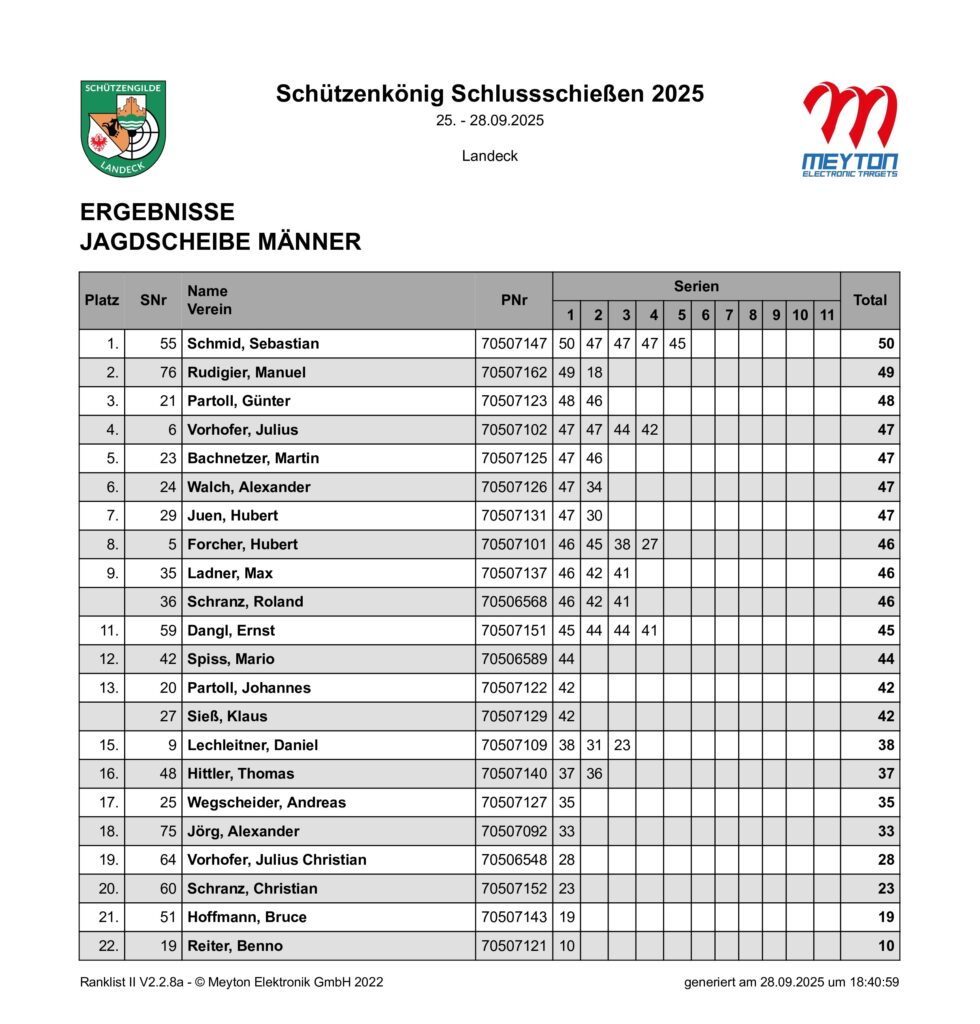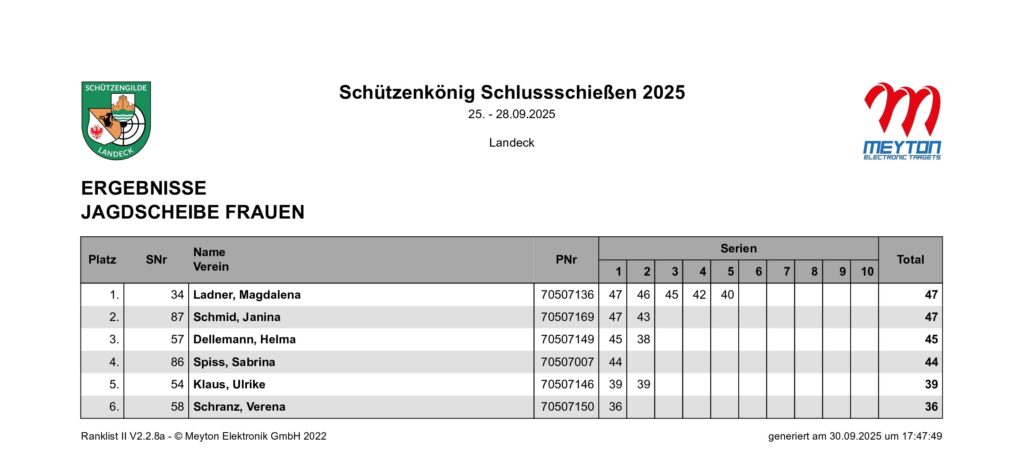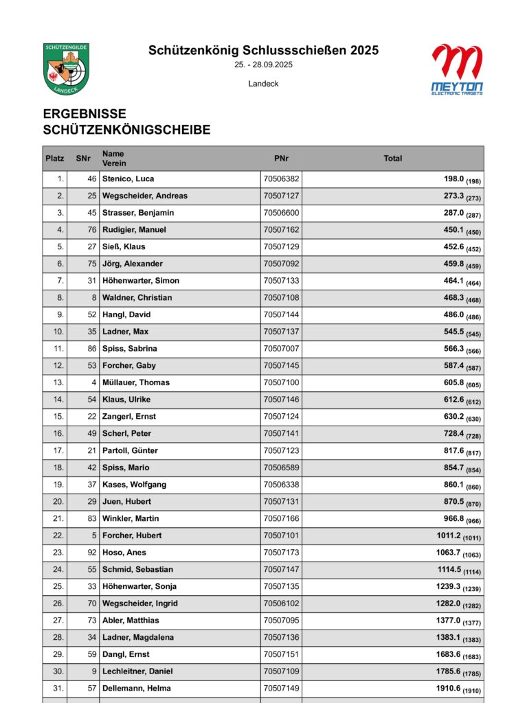 Ergebnisliste Schluss- und Schützenkönigsschießen 2025