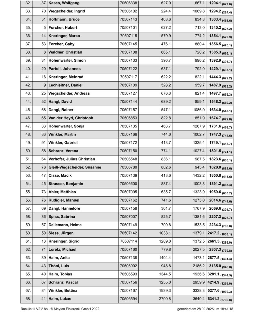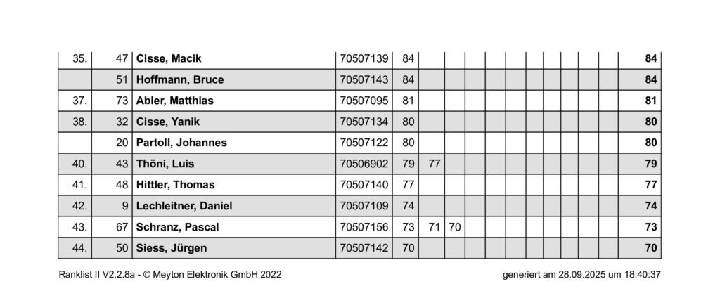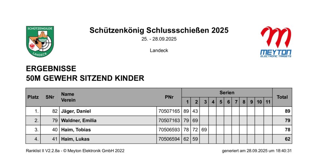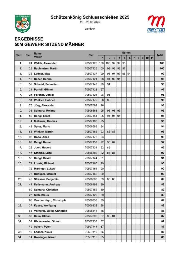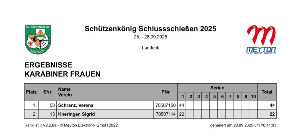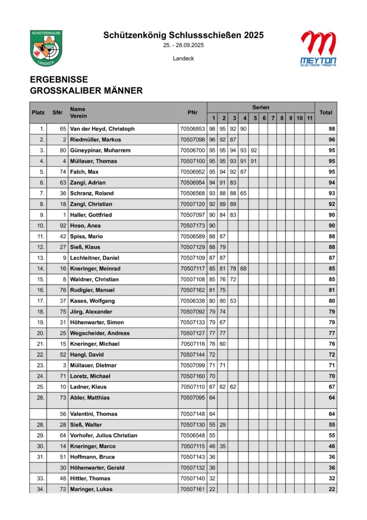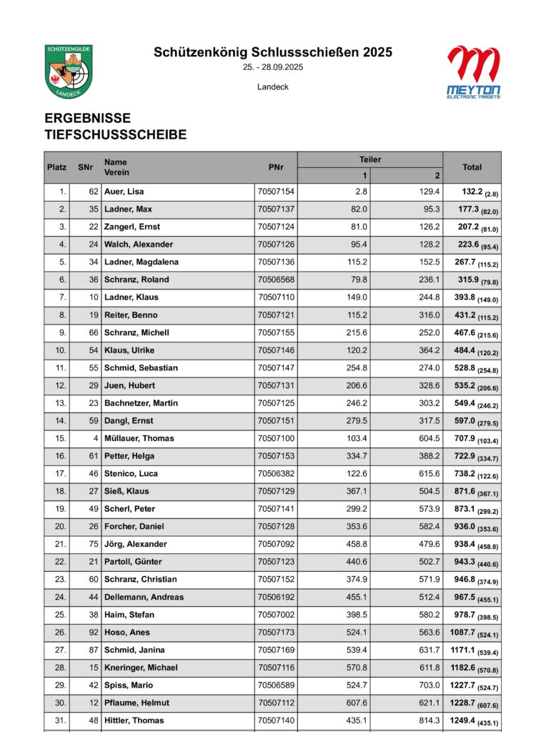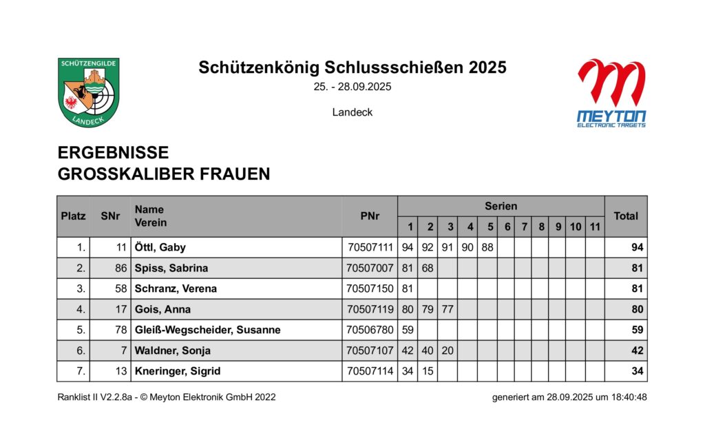 Ergebnisliste Schluss- und Schützenkönigsschießen 2025
